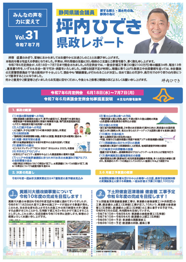 坪内ひでき県政レポート vol.31 令和7年7月発行。